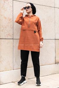 Modalamelif Kanguru Cep Yarım Fermuarlı Tunik Kiremit