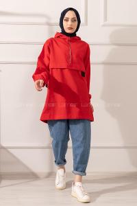 Modalamelif Kanguru Cep Yarım Fermuarlı Tunik Kırmızı