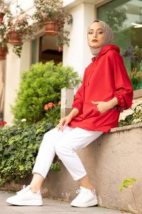 Modalamelif Kanguru Cepli Kapşonlu Sweatshirt Kırmızı