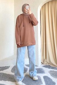 Lamelif Kapüşonlu Salaş Sweatshirt Sütlü Kahve