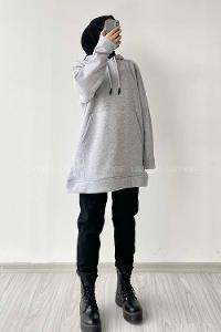 Modalamelif Kanguru Cepli Uzun Sweatshirt Gri