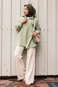 Modalamelif Kapak Cep Detaylı Önü Boydan Düğmeli Gömlek Çağla Yeşili