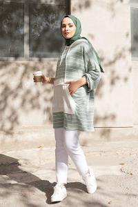 Modalamelif Kapak Cepli Çizgili Tunik Çağla