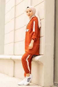 Lamelif Sırt Fermuar Detaylı Pantolonlu Takım Kahverengi