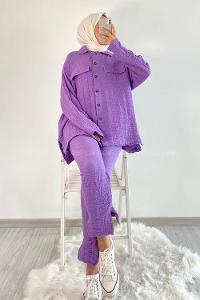 Lamelif Balance Armalı Çımalı İkili Tesettür Takım Sütlü Kahve