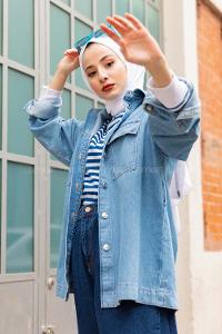 düz kesim, gömlek yaka, klasik kot renginde, çift kapaklı cepli, trend ceket.