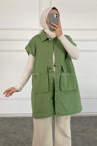 Modalamelif Kapak Cepli Metal Düğmeli Yelek Çağla Yeşili
