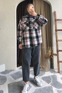 Modalamelif Kapak Cepli Oduncu Gömlek Siyah