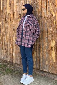 Modalamelif Kapak Cepli Önü Boydan Düğmeli Oduncu Gömlek Mor