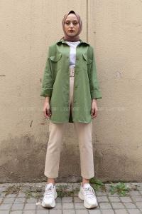Modalamelif Kapak Cepli Oversize Gömlek Çağla