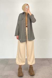 Modalamelif Kapak Cepli Oversize Gömlek Haki