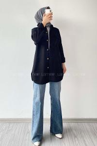 Lamelif Omuz Vatka Detaylı Tesettür Gömlek Siyah