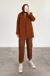 Lamelif Omuz Vatka Detaylı Tesettür Gömlek Acı Kahve