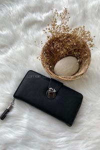 Modalamelif Kapak Kilit Büyük Boy Püsküllü Cüzdan Siyah