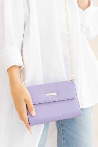 Modalamelif Kapak Kilitli Cüzdan Çanta Lila