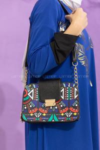 Modalamelif Kapak Kilitli Popart Çapraz Çanta Siyah