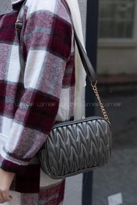 Lamelif Omuz Askılı Deri Görünümlü Kadın Çanta Siyah