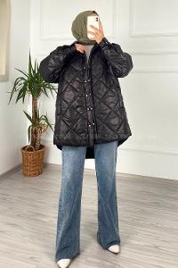 Modalamelif Kapitone Desenli Çift Cepli Çıtçıtlı Mont Siyah
