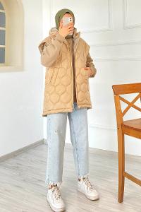 Modalamelif Kapitone Desenli Çift Cepli Kapüşonlu Şişme Yelek Taş