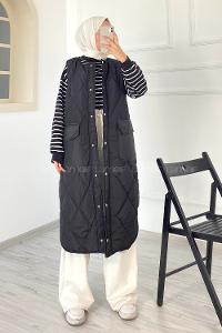 Lamelif Kolsuz Tesettür Yelek Siyah