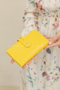Modalamelif Kapak Kilitli Düz Renk Cüzdan Hardal Sarı