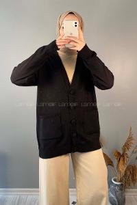 Modalamelif Kaplama Düğmeli Triko Hırka Siyah