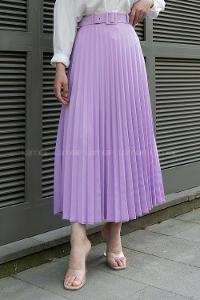 Modalamelif Kaplama Kemer Detaylı Piliseli Krep Etek Lila