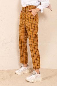 Modalamelif Kaplama Kemerli Ekose Pantolon Hardal Sarısı