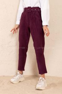 Modalamelif Kaplama Kemerli Kaşe Pantolon Mor