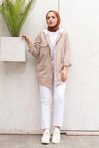 Modalamelif Kapşon Garnili Ceket Taş
