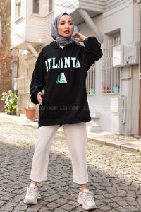 Modalamelif Kapşonlu Atlanta Baskılı Sweatshirt Siyah