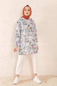 Lamelif Kapşonlu Oversize Yan Cepli Sweat Beyaz