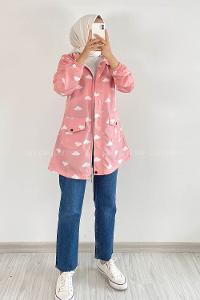 Kapşonlu Bulut Desen Yağmurluk