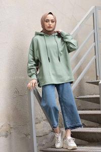 Modalamelif Kapşonlu Dikiş Detaylı Sweat Çağla Yeşili