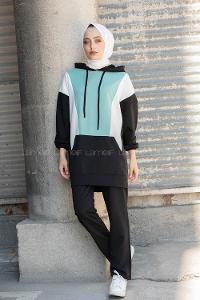 Modalamelif Kapşonlu Garnili İkili Takım Çağla