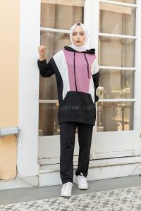Modalamelif Kapşonlu Garnili İkili Takım Pudra