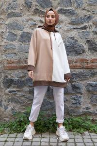 Modalamelif Kapşonlu Garnili Scuba Sweatshirt Soft Kahve