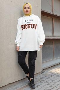 Modalamelif Kapşonlu Houston Baskılı Sweatshirt Beyaz
