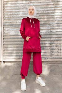 Modalamelif Kapşonlu Kadife İkili Takım Bordo