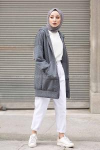 Modalamelif Kapşonlu Kapitone Hırka Bohem Gri