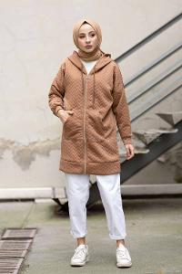 Modalamelif Kapşonlu Kapitone Hırka Sütlü Kahve