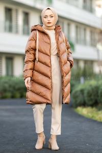 Lamelif Kol Detaylı Fermuarlı Teddy Mont Taş Rengi