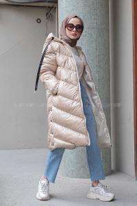 Modalamelif Kapşonlu Şişme Mont Sütlü Kahve