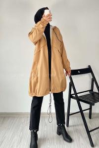 kapüşon detaylı fermuarlı çift cepli trenç kap