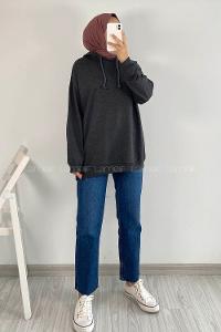 Lamelif Kapüşonlu Salaş Sweatshirt Antrasit