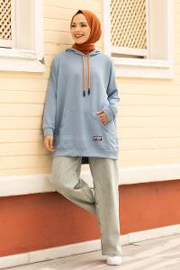 Lamelif Kapüşonlu Salaş Sweatshirt Bebe Mavisi