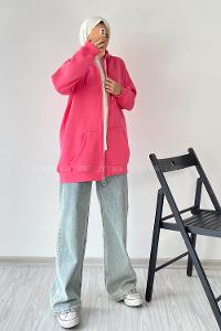Modalamelif Kapüşon Detaylı Kanguru Cepli Fermuarlı Hırka Pembe