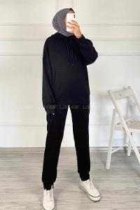 Modalamelif Kapüşon Detaylı Kanguru Cepli İkili Takım Siyah