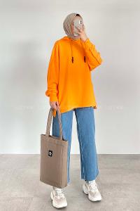 Modalamelif Kapüşon Detaylı Ters Dikiş Model Ursula Sweat Oranj
