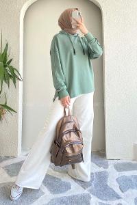 Modalamelif Kapüşon Detaylı Ters Dikiş Model Ursula Sweat Pastel Yeşil